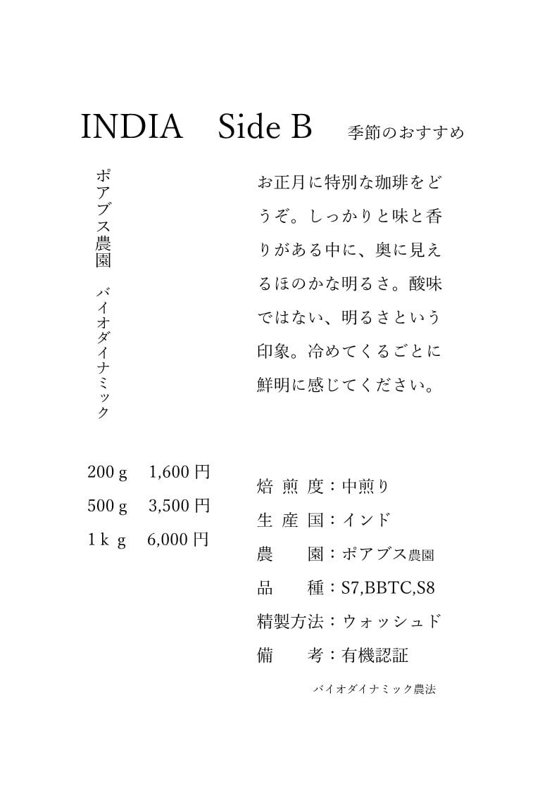 30 インディア ポアブス農園 バイオダイナミック B面 1kg