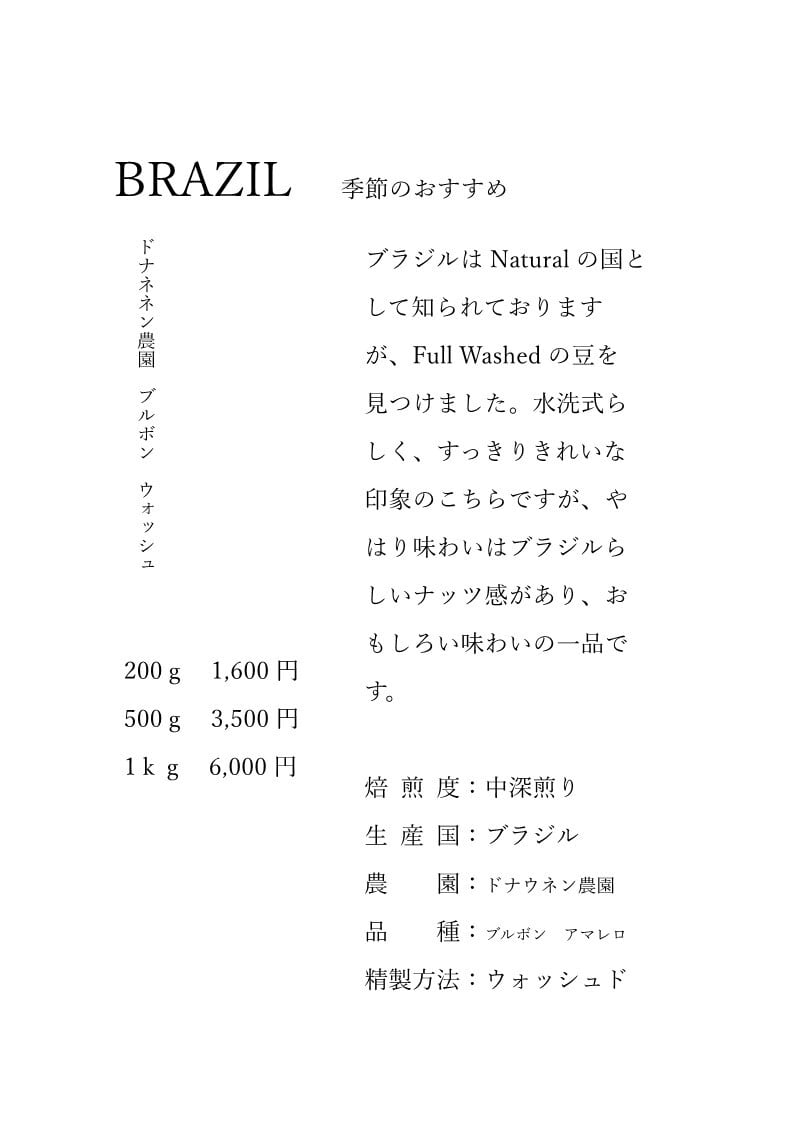 01 ブラジル ドナネネン農園 ウォッシュド 500g